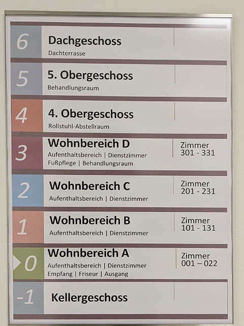 - Die Wohnbereiche zwei, drei und vier heißen entsprechend: Wohnbereich B, – C, bzw. – D.